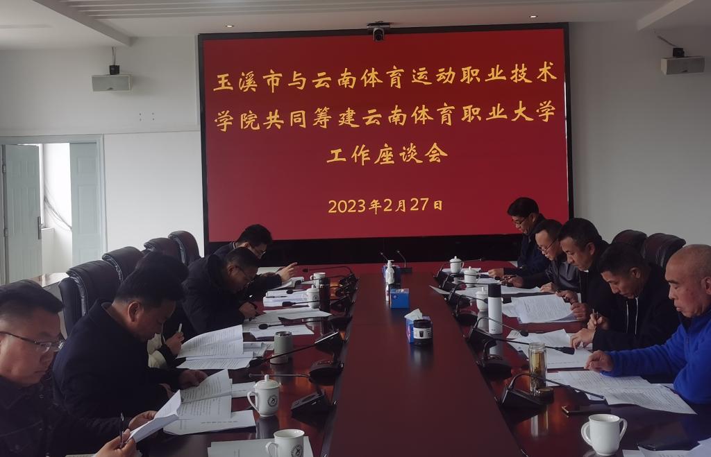 2023年2月27日下午14:30,玉溪市相关部门领导到best365就共同筹建云南体育职业大学工作展开座谈,校长代红兵率校领导及工作专班同志参加。