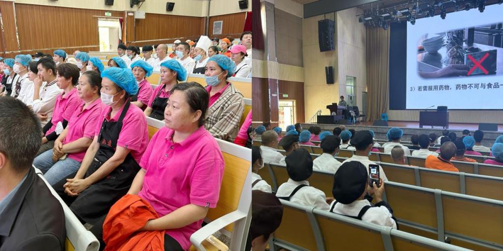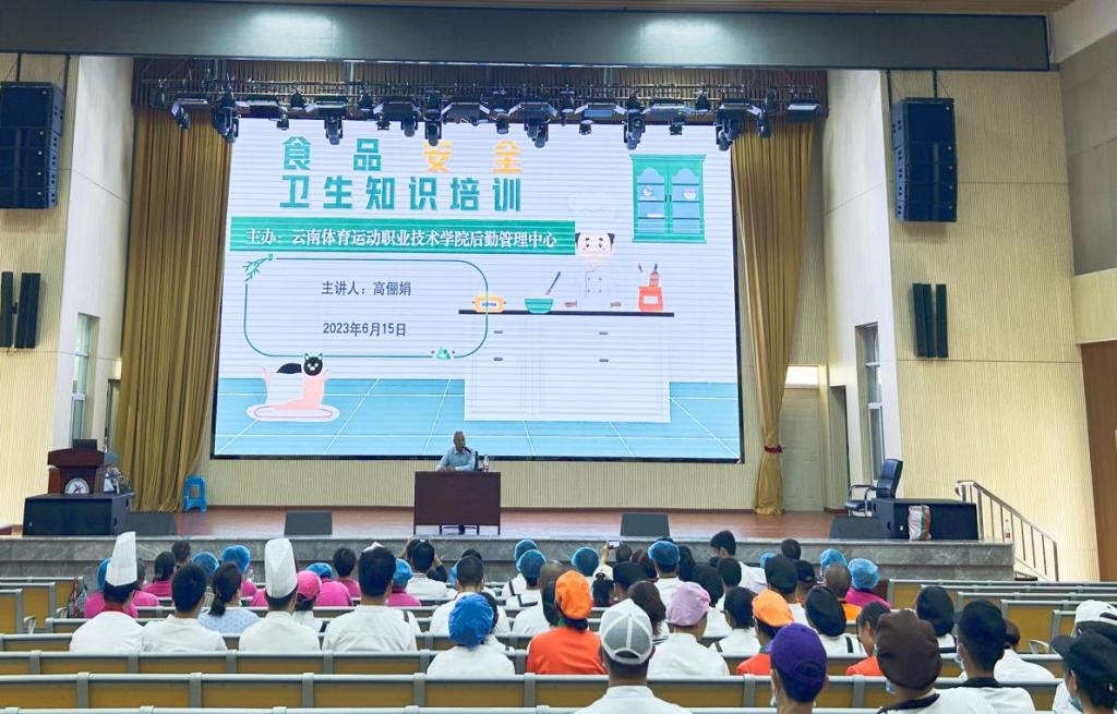为进一步提高校园食品从业人员业务水平,增强其食品安全风险防范意识,2023年6月15日下午,后勤管理中心在学生礼堂开展了食品安全卫生知识培训,对校园餐饮从业人员进行了食品安全知识培训。参加培训的有后勤管理中心赵志明副主任、医务所高俪娟医生、后勤管理中心食堂分管小组的老师以及学生一、二、三食堂、大学生创新创业中心、商超小卖部等食品制备从业人员、管理人员等80余人。