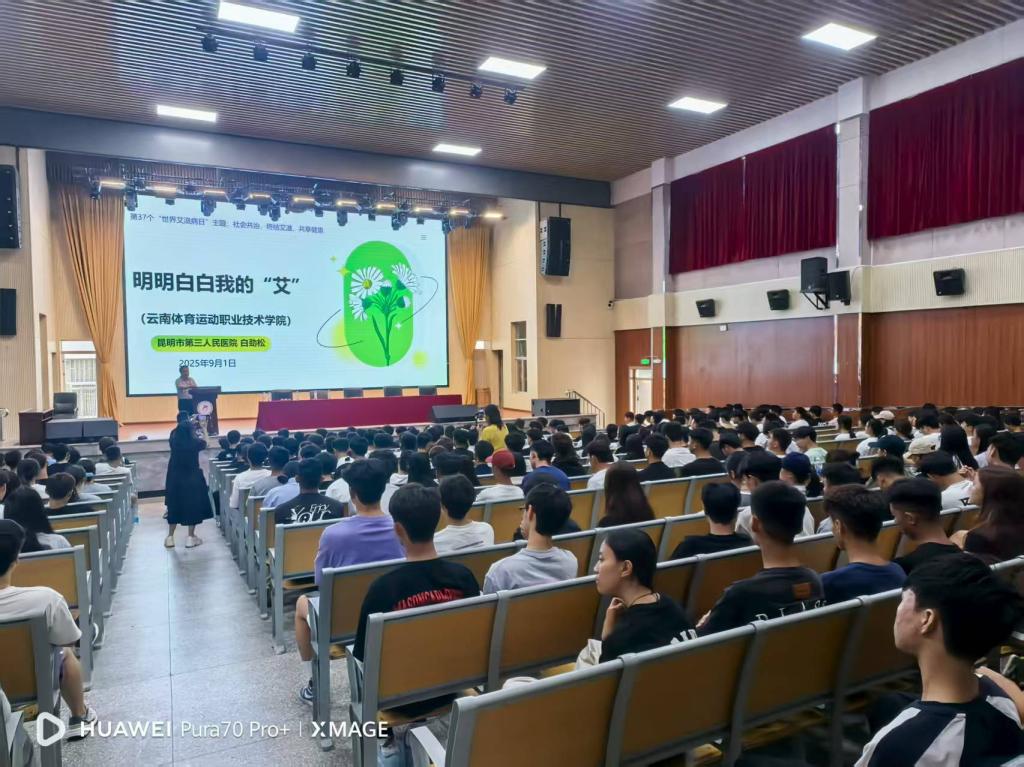 2025年9月1日下午,后勤管理中心在学生礼堂主会场及大田径场分会场组织开展了2025级新生开学第一课——“防艾宣传教育课”,活动的主题为《明明白白我的“艾”》,本次活动特邀昆明市第三人民医院副院长白劲松担任主讲嘉宾,2000余名新生通过现场参与及直播观看两种方式系统地学习了防艾的相关知识。