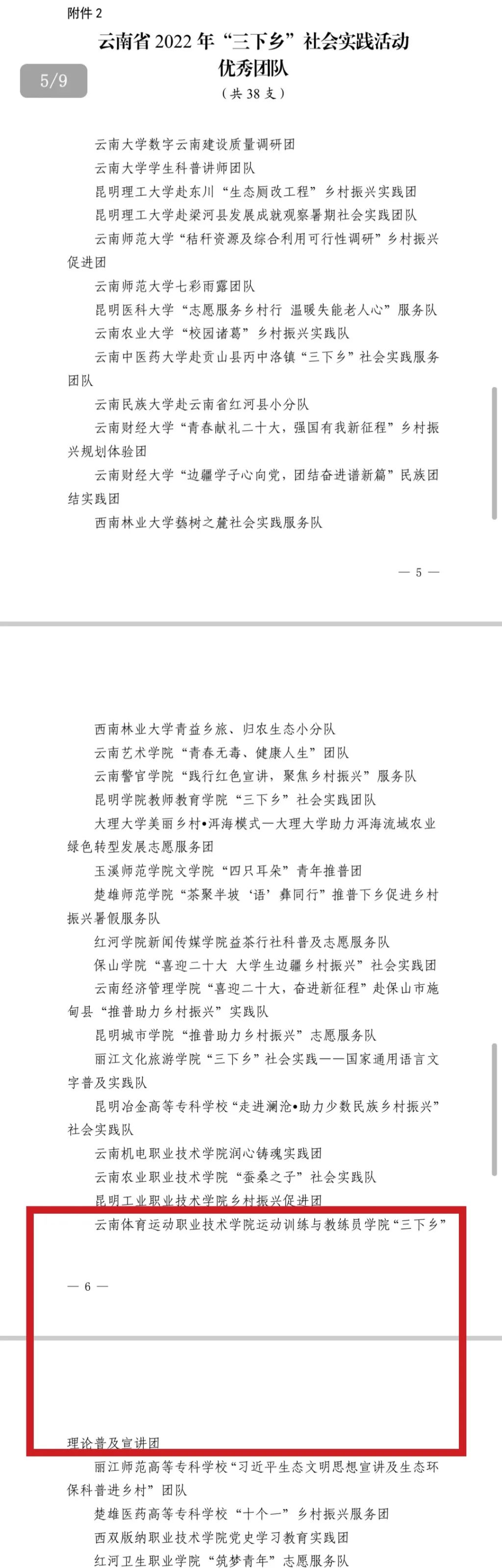 近日,团省委下发《关于2022年云南省大中专学生志愿者暑期文化科技卫生“三下乡”社会实践活动优秀单位、团队和先进个人的公示》,best365三下乡团队运动训练与教练员学院“三下乡”理论普及宣讲团拟获云南省2022年“三下乡”社会实践活动优秀团队。