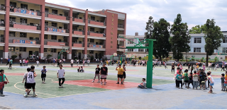迎接完后,会泽县11位同学们,跟随校长前往自己所支教的地方。刚来到新工地小学,才进到学校时是他们的课间休息时间,球场上的篮球场几乎都是同学们在打球,在这里,让我看到同学们对篮球的热爱。