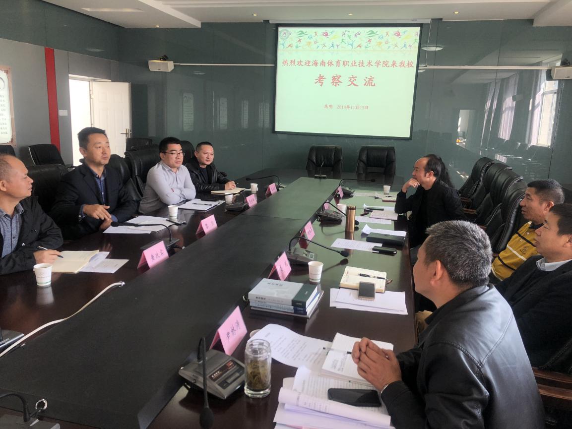 本网讯 近日,海南体育职业技术学院黎凯副院长一行4人来我院交流工作。best365代红兵院长在云帆楼第一会议室接待了客人。学校龚斌副院长及党政办公室、科研处、计财处等相关部门负责同志陪同参加了相关活动。