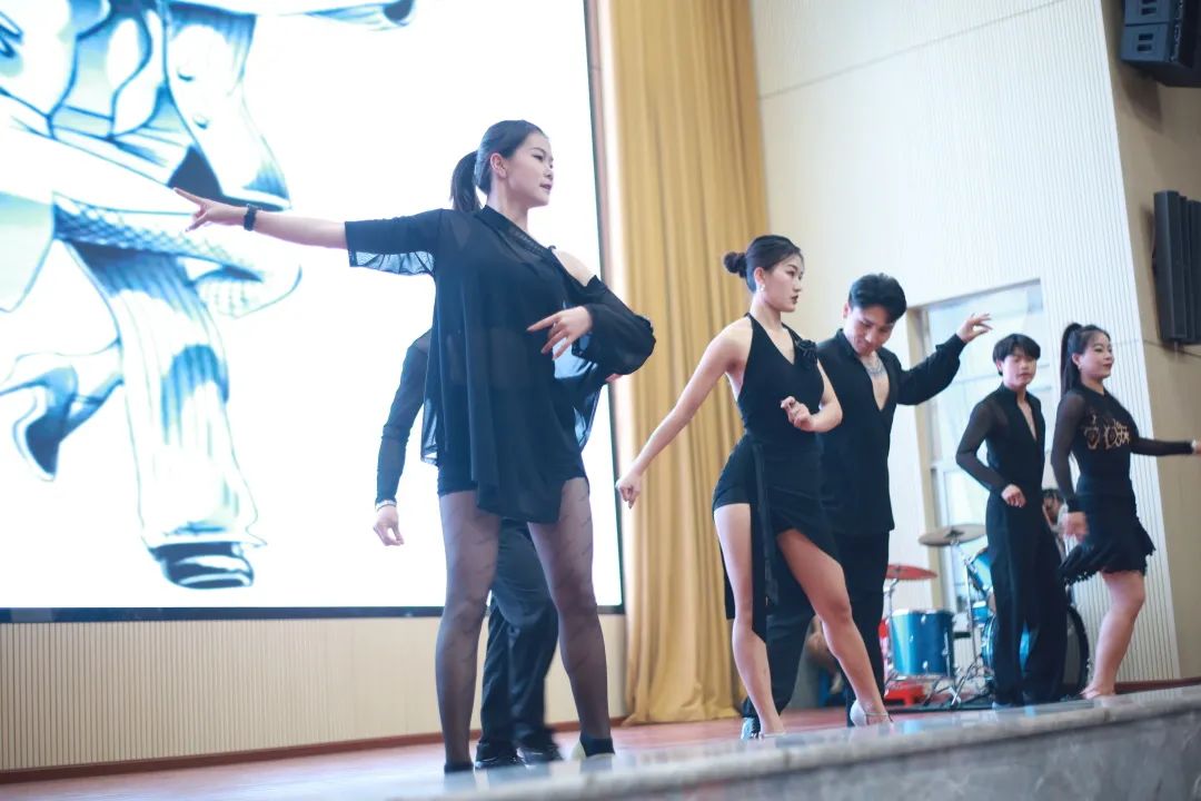 舞蹈是对时间、动作、幸福、喜悦、伤心和羡慕的表达;舞蹈是有节拍的步调,就像诗歌是有韵律的文体一样。校体育舞蹈团带来了节目《爱的恰恰》。