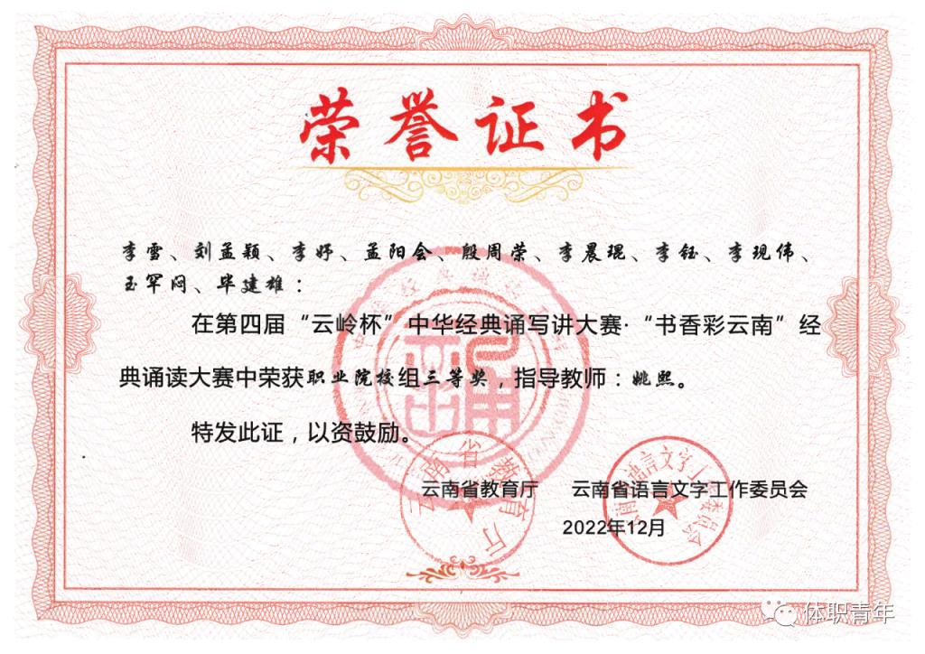best365学生团队在参加的云南省第四届“云岭杯”中华诵写讲大赛比赛中荣获三等奖。