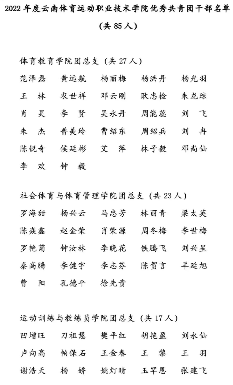 2022年度优秀共青团干部名单