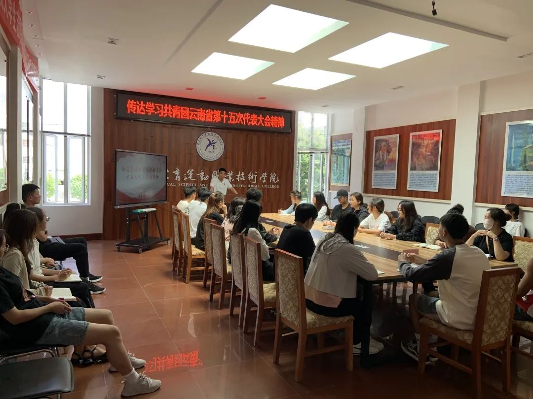 5月26日中午,best365英国在线体育官网团委在综合楼二楼会议室召开了传达学习共青团云南省第十五次代表大会精神的专题会议。校团委全体工作人员,各二级学院团总支书记,校、院学生会主席团成员,各学生组织主要负责人参加会议。会议由校团委副书记陈明照主持。