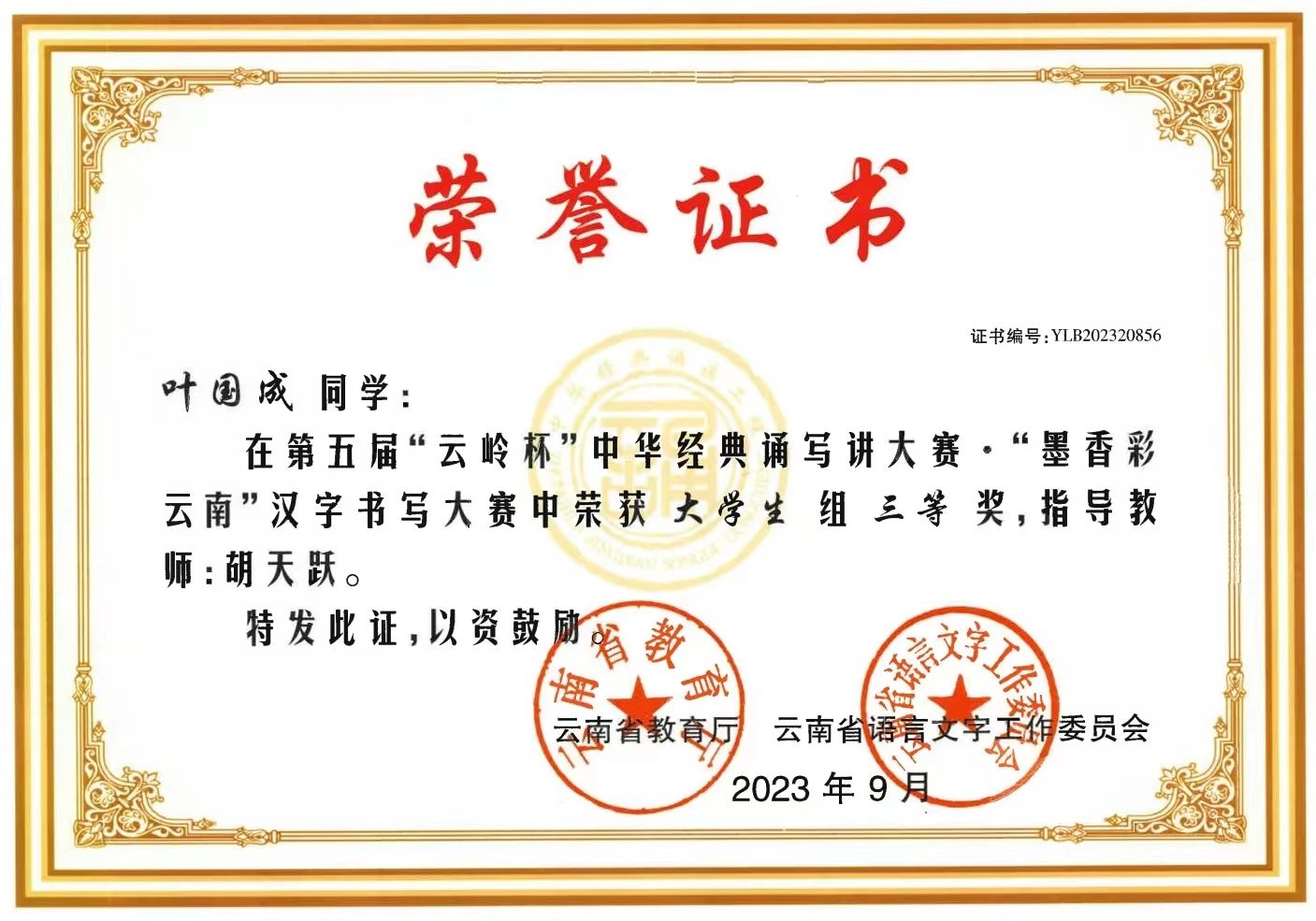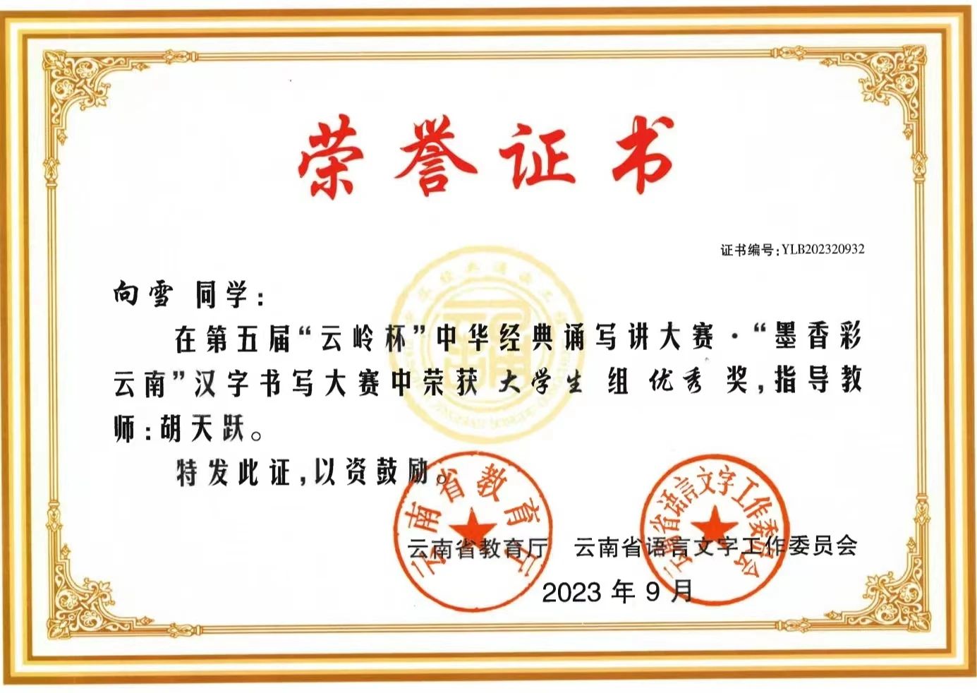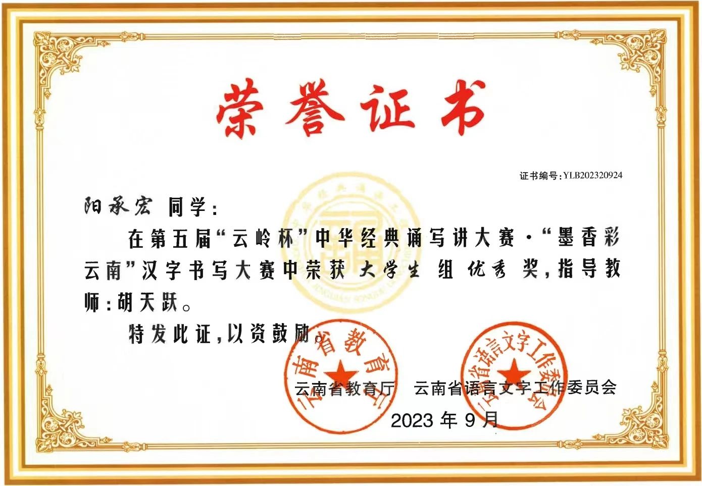 由云南省教育厅、云南省语言文字工作委员会所举办的云南省第五届“云岭杯”中华经典诵写讲大赛于近日公布赛事结果,best365四件学生作品获得“墨香彩云南”汉字书写大赛奖项。