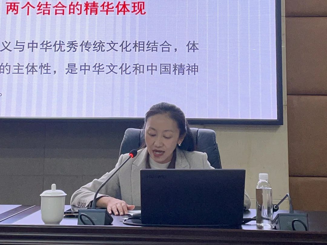 开班仪式结束后,马克思主义学院杨艳萍教师围绕“习近平新时代中国特色社会主义思想产生的历史逻辑”开展第一堂课授课。她分别从马克思主义中国化时代化的历史进程、中国共产党百年奋斗的历史经验、新时代新的历史方位、习近平新时代中国特色社会主义思想的历史地位等四个维度展开了授课。