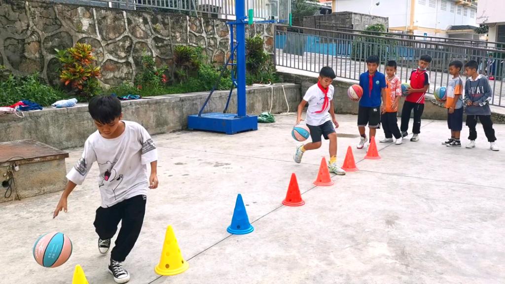 这是我来到九年一贯制学校的第四周,这周孩子们训练的时间也多了,训练量也比前几个星期大了,早上6点起床开始跑步,跑完步罚篮。跑完步就罚篮是完了让孩子们能够更好的掌握在比赛过程中由于高强度的运动不能精准的罚篮命中,所以要让孩子们能够掌控和适应在高强度运动中做到罚篮命中率。下午的训练就让孩子们练习运球、传球、三步上篮等基本功!练习完这些基本功后我们开始了:小碎步、高抬腿、俯卧撑、俯卧屈伸腿等训练。
