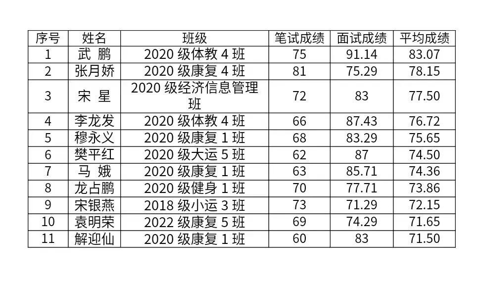 根据共青团云南省委下发关于印发《2023—2024年度云南省大学生志愿服务西部计划实施方案》的通知(云青联〔2023〕10号))文件要求、2023-2024年度云南省西部计划项目办的工作总体安排,结合学校实际情况,按照学校关于印发《关于2023—2024年度大学生志愿者服务西部计划志愿者招募考试相关工作的通知》和《2023—2024年度best365英国在线体育官网大学生志愿服务西部计划实施方案》文件要求,现将2023—2024年度学校大学生志愿服务西部计划志愿者招募考试,参加面试考生的成绩予以公示。