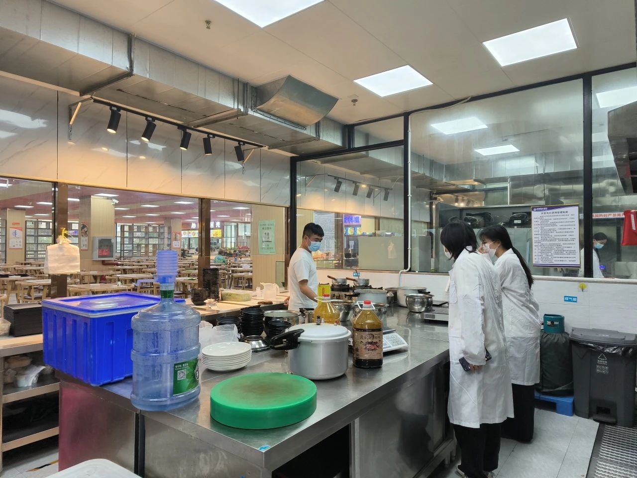 检查过程中,学生会工作人员按照食堂的要求,戴上口罩和头套,穿上专用的工作服,对食堂的饭菜质量、食品卫生、餐具消毒等进行了全面细致的检查。同时,对食堂设施、食堂环境等方面做了评估,督促学校食堂建立起干净整洁的就餐环境,同时对菜品新鲜度、配备消防设备、餐具消毒、问题反馈处理、餐厅管理制度五大方面进行检查,并对每一项检查结果做了认真记录,以确保学生能够享用到安全、健康的食品。