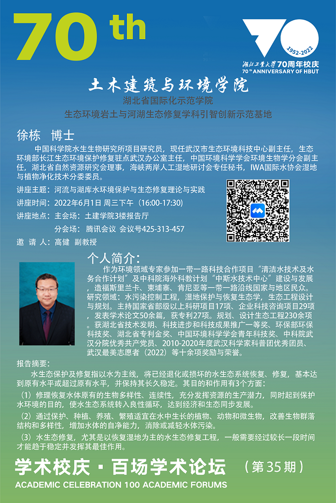 学术校庆·百场学术论坛--生态环境岩土与河湖生态修复学科引智创新示范基地学术讲座(第27期)