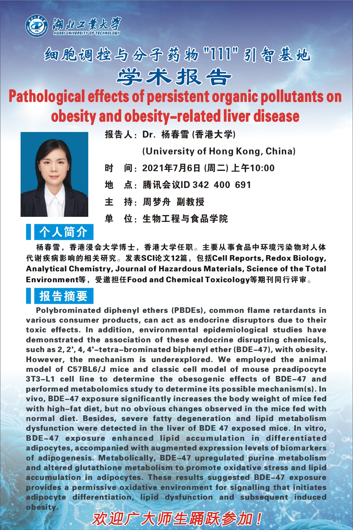 报告人:Dr. 杨春雪(中国香港大学)(University of Hong Kong, China)