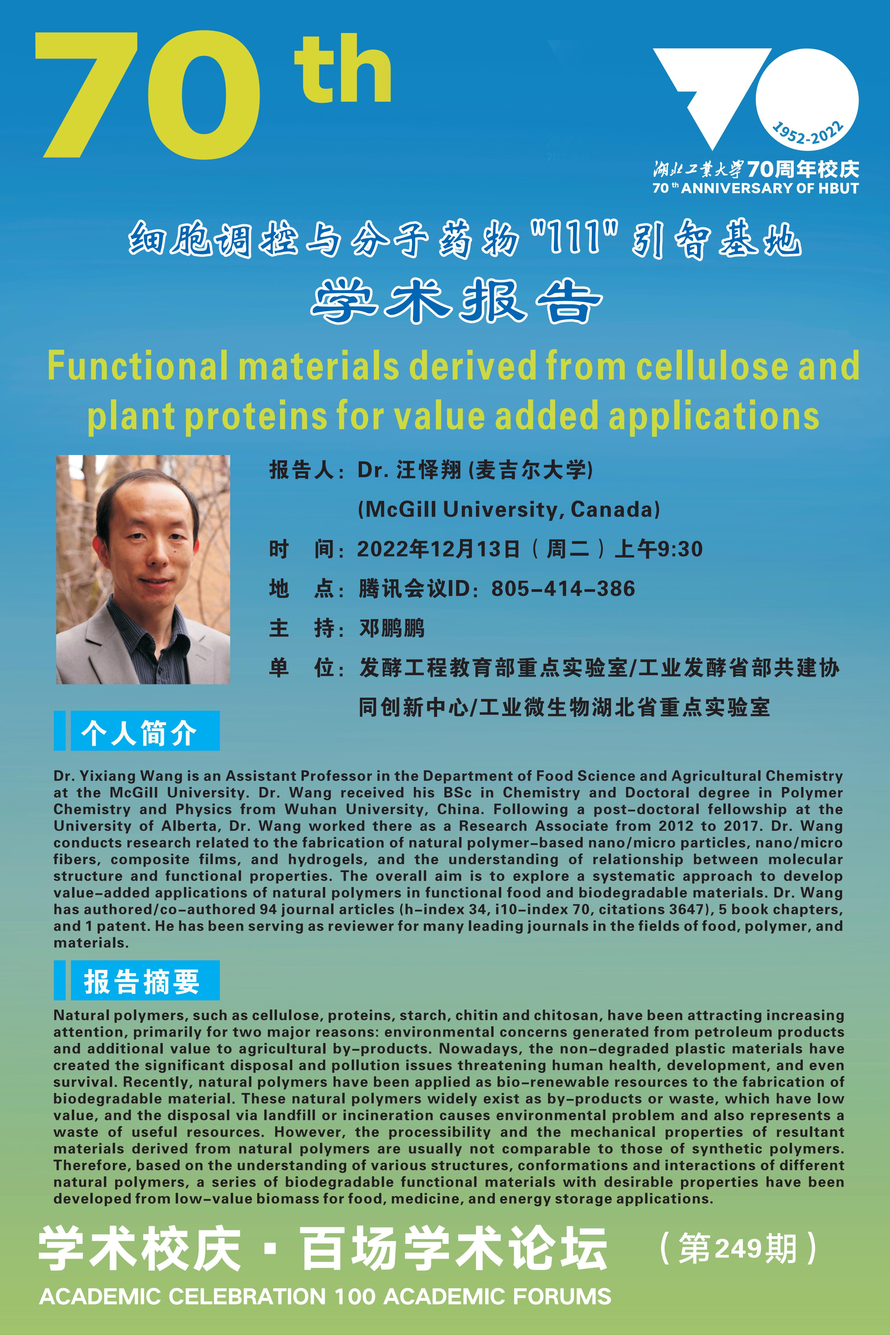 学术校庆·百场学术论坛--细胞调控与分子药物“111”引智基地学术报告(第249期 )