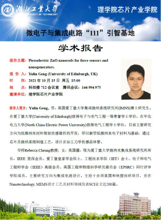 报告主题:Piezoelectric ZnO Nanorods for Force Sensors and Nanogenerators.