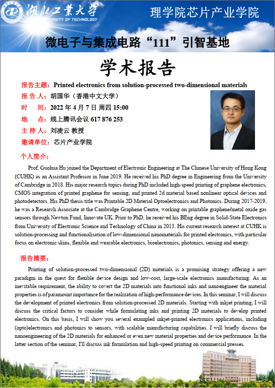 报告主题:Printed electronics from solution-processed two-dimensional materials