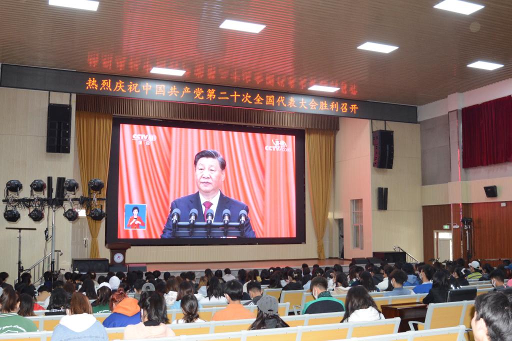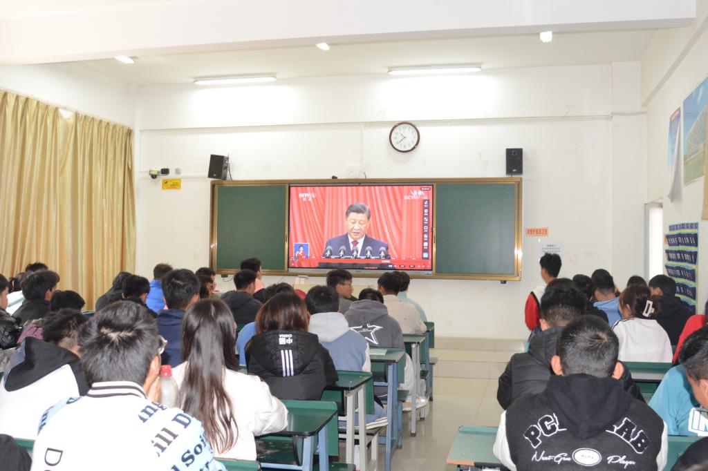 学校党委认真组织广大党员干部教职工师生收听收看了党的二十大开幕式现场直播,认真聆听习近平总书记作报告。学校领导班子,副科级以上中层干部在云帆楼第一报告厅组织收看了大会实况直播,集中聆听习近平总书记代表十九届中央委员会作报告。学校团委工作干部,各二级学院团干部,学生入党积极分子和学生代表在学生礼堂组织收看大会直播,各班团员在教室集中收看,全校师生以各种方式收看收听直播。