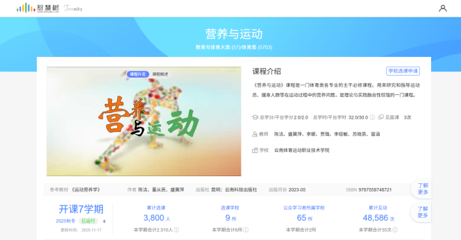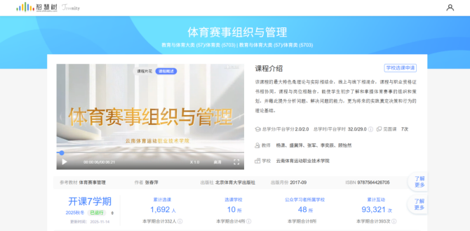 建立多平台数字课堂,搭建多元化考评体系。2023年,学校在智慧树、超星等学习平台开设了《小学体育与健康教材教法》《体能训练学》和《体育赛事组织与管理》等网络教学课程51门。2024年立项建设《毛泽东思想和中国特色社会主义理论体系概论》《思想道德与法治》等两门线上精品课程。2025年9月学校启动运动训练教学资源库建设项目,不断更新现代教学资源。依托“超星智慧考试系统”,每年选定6门具备线上考试条件的课程建立试题库,并进行线上考试。