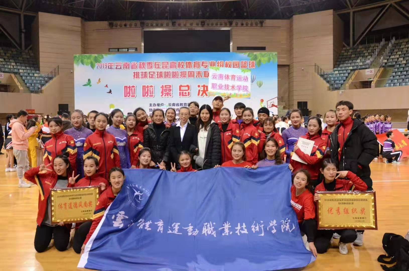 2019年10月13日——12月28日,在学院领导的坚强领导下竞技体育学院集全校各部门的支持组队参加了云南省2019年秋季在昆高校校园足球篮球排球暨啦啦操比赛,本次比赛为云南省教育厅主办、云南省大学生体育协会协办。在昆高校共有13所体育专业院校参加了本次比赛,历经两个月的激烈角逐终于落下帷幕。最终best365在总决赛中取得女篮第三名、女足第四名、女排第五名、男篮第十名、啦啦操优秀组织奖和体育道德风尚奖的优异成绩。