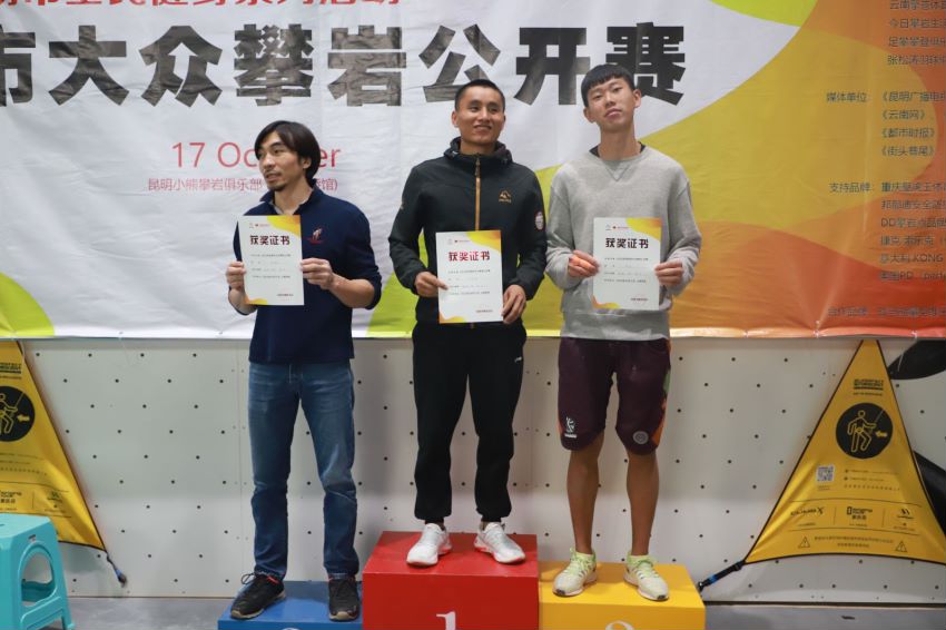 2020年10月17日,“昆明市攀岩公开赛”经过激烈的角逐,完美收官。云南体职院攀岩队在此次比赛中荣获7金8银3铜的好成绩。分别是付刚委获速度、攀石、全能三块金牌;郭有艳获速度、难度、攀石、全能四块金牌;张晶获难度、攀石、全能三块金牌;曹玉兰获速度银牌;董文杰获难度、攀石两块银牌;肖伟获速度一块银牌;李旭获全能银牌,速度和攀石两块铜牌;陈加会获难度铜牌。