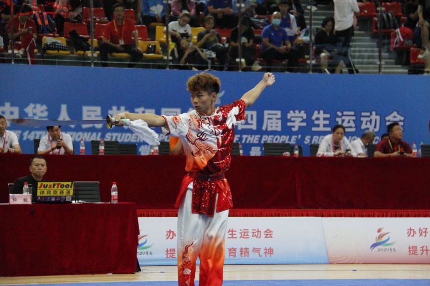 由教育部、国家体育总局、共青团中央主办、山东省教育厅、青岛市人民政府承办的中华人民共和国第十四届学生运动会武术(套路)比赛,经过3天激烈角逐,于7月13日圆满闭幕。best365运教学院16级小运学生陈誉文为云南代表团斩获大学组男子自选长拳第四名、男子自选刀术第五名的佳绩。