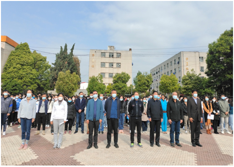 2022年4月4日上午,社会体育与体育管理学院在综合楼前举行了升旗仪式,学校领导班子成员,各部门、二级学院老师,以及社会体育与体育管理学院全体师生参加了升旗仪式。