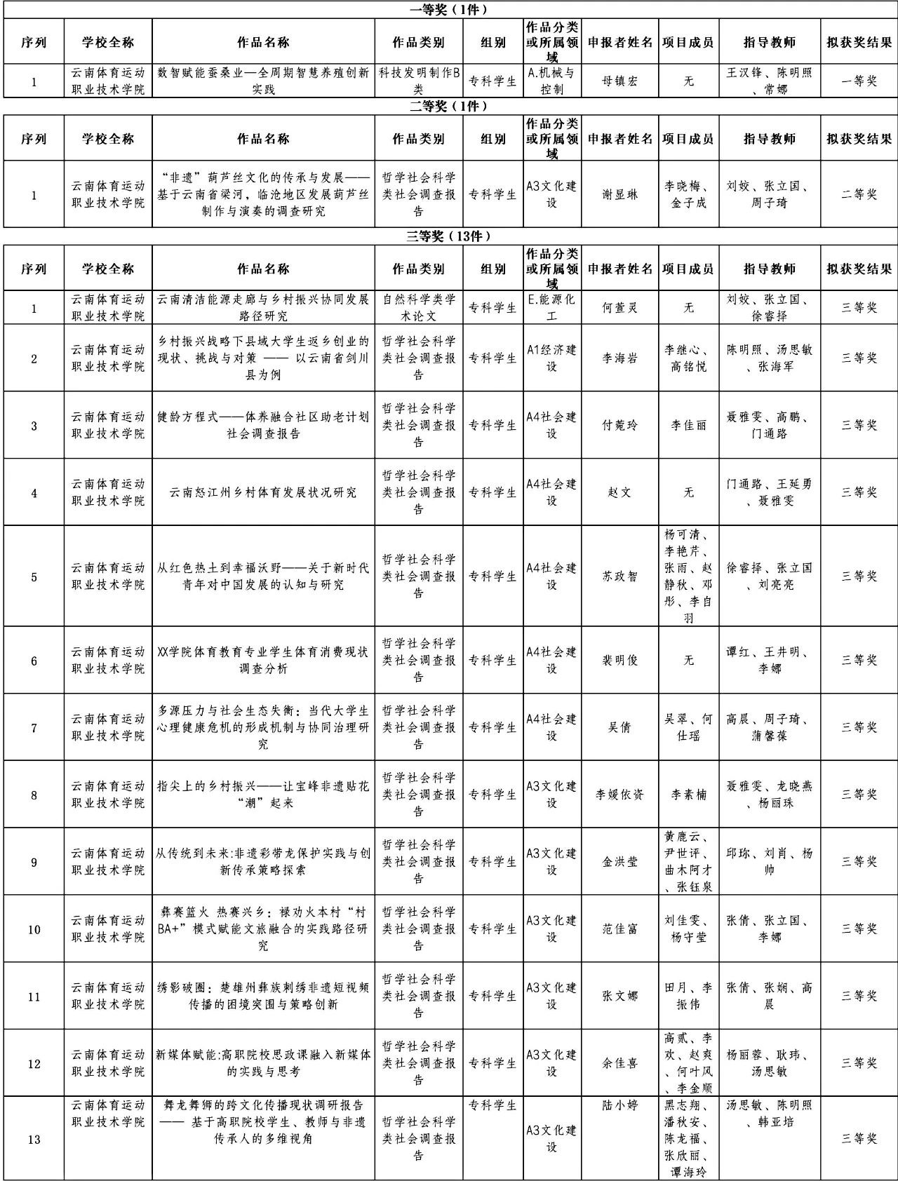 此次佳绩的取得,既是参赛团队辛勤付出的成果,也离不开学校“以赛促学、以赛促创、以赛育人”机制的坚实支撑。云南体职院团委始终坚持以“挑战杯”为引擎,以科技创新为引领,不断优化科创育人体系建构,将持续激励广大青年学子弘扬科学精神,积极投身科技创新,勇攀科学高峰,依托竞赛平台,实现科技创新成果在数量增长与质量提升上的协同发展,为服务国家战略与区域发展贡献智慧力量!期待更多体职院学子在未来的竞赛中大放异彩,续写辉煌。