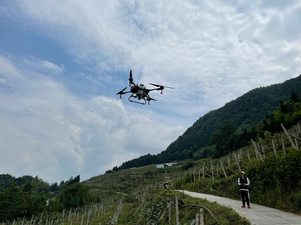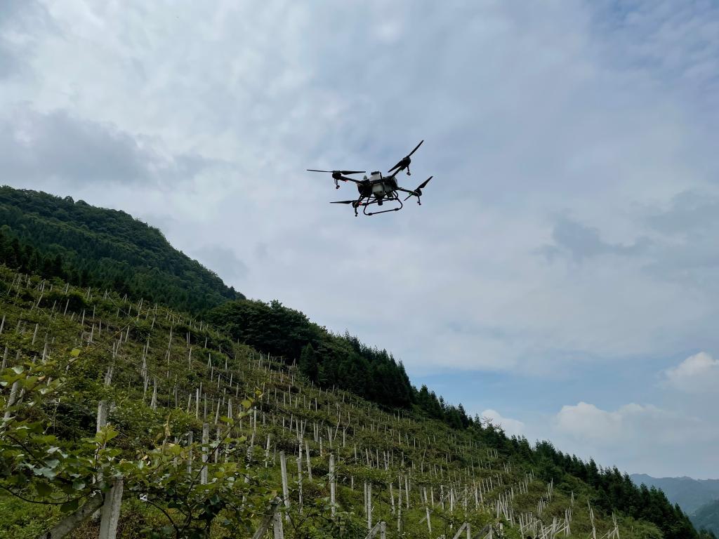 6月11日上午,伴随着一阵阵嗡嗡声,无人机再度起飞,此次的飞行的任务是运用无人机植保作业技术为安乐村陈家山猕猴桃种植基地施洒叶面肥。学院无人机专业教师邓绍猛介绍说:“此次用于植保作业的无人机可携带约25公斤重的肥料,最高可在30米左右飞行高度实施肥料施洒作业,无人机喷洒农药操作简单,速度快,效率高,而且喷洒均匀,雾化效果好,又省水省药,减少了环境污染。”