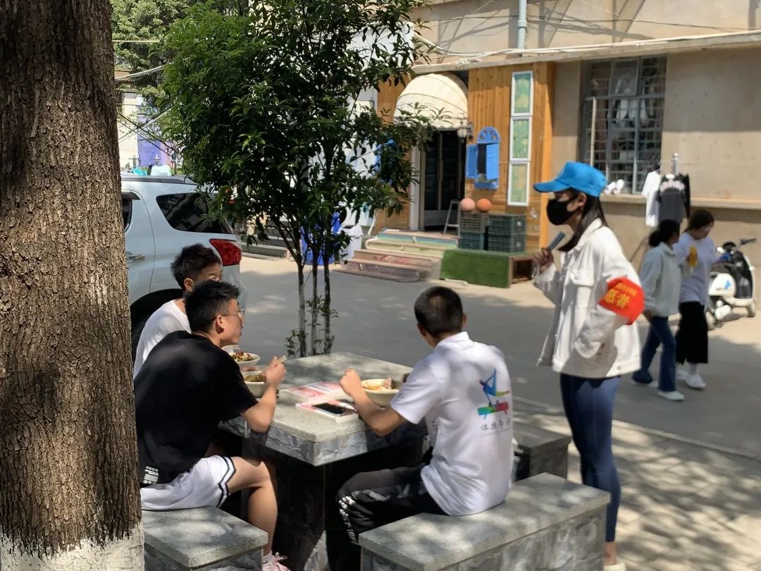 疫情期间,志愿们还劝导同学们在食堂选餐时,要减少交流,保持距离;选座时,不扎堆,不对面,分散就坐;就餐时,专心吃,不讲话,快速就餐;结束后,戴口罩,净桌面,迅速离开。