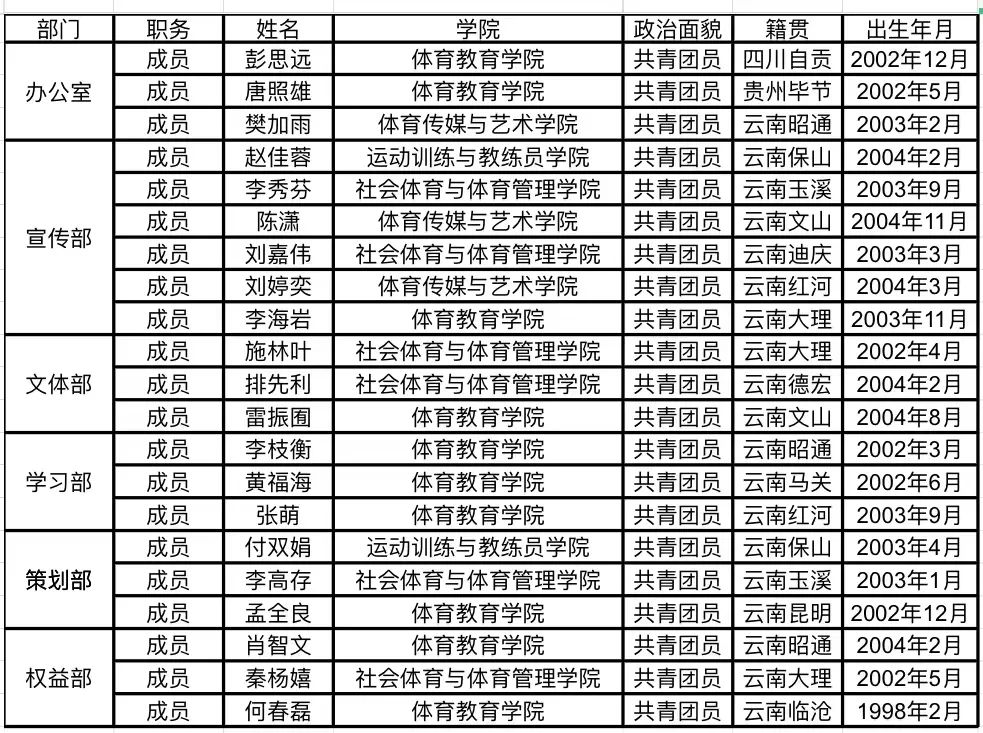 best365英国在线体育官网第十二届学生会成员名单
