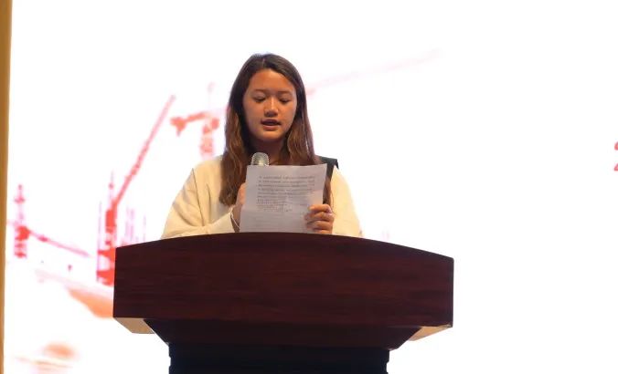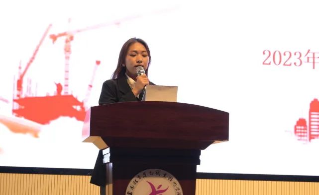 传媒学院第十一届主席团成员李星乐上台发言,他对第十一届学生会工作总结进行汇报,希望新成员们接过接力棒后能积极做好模范带头作用,求真务实、艰苦能干、团结协作,落实贯彻为同学服务的宗旨。