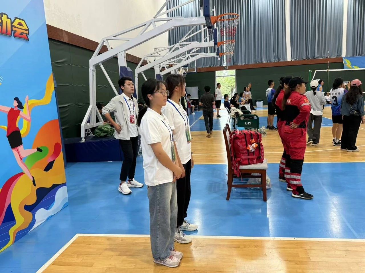 在比赛前,志愿者协助工作人员进行场地布置、设备调试,确保每一项比赛都能顺利进行。在比赛中,志愿者积极参与后勤保障工作,为运动员们提供饮用水、毛巾等物品,保障运动员们顺利完成比赛。遇到有问题的运动员时,他们会耐心地为运动员们指引方向、解答疑问,让运动员们能够全身心地投入到比赛中。