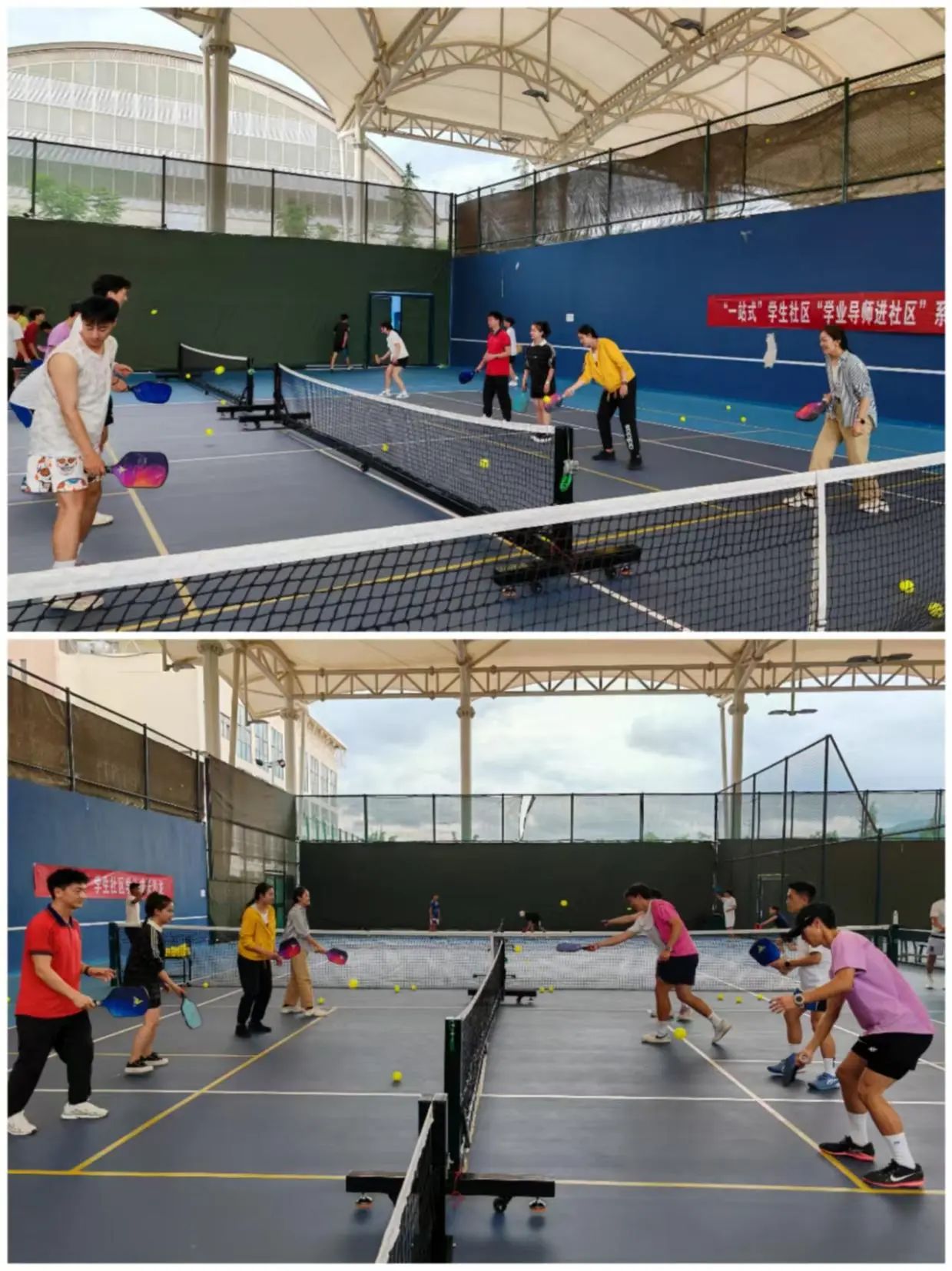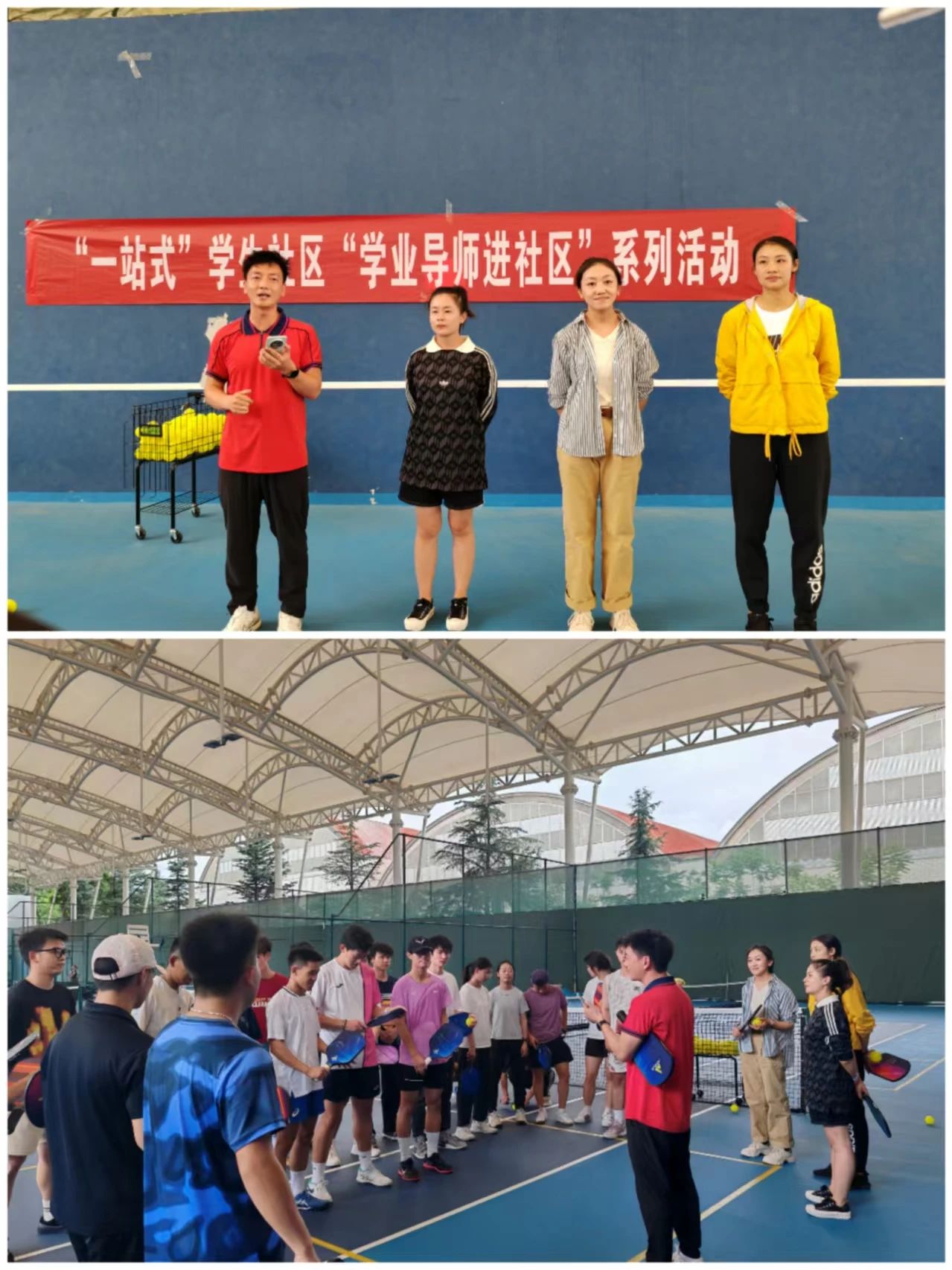 活动现场,在学业导师和专业学生的专业指导下,让从未接触过匹克球的老师和同学们快速掌握了“握拍——发球——跑位”基础技巧,传递了一种“不设门槛、注重协作、享受过程”的运动精神。如匹克球一般,球拍比网球拍小,场地比羽毛球小,规则简单易上手,既能单打对攻,也能双打协作。而青春就像匹克球一样——不设门槛,但足够热烈;注重配合,但不失个性。学四楼全体学业导师们期望通过这场活动为毕业生的未来启程注入积极能量。