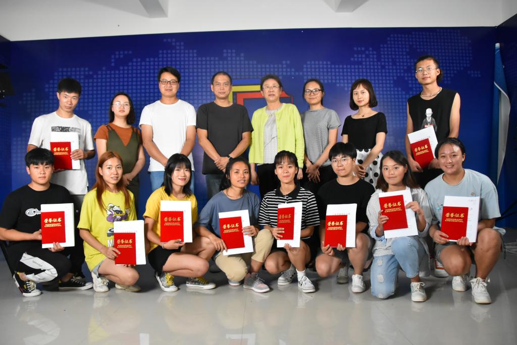 新闻采编与制作专业学生在专业实训中与嘉宾合影