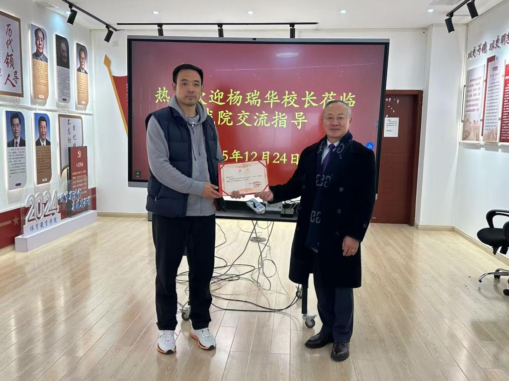 杨瑞华校长在受聘发言中,对学院的信任与认可表示感谢。他谈到,基础教育阶段是体育人才培养的重要基石,期待未来能以校外专业带头人的身份为桥梁,加强小学与高校在体育教育领域的双向联动,助力高校培养出更多适应基础教育需求的高素质体育教师。他还结合自身多年的一线教学管理经验,分享了对当前小学体育教育发展现状的思考,并就高校体育教育专业人才培养如何更好地对接小学教学实际需求提出了建设性意见。