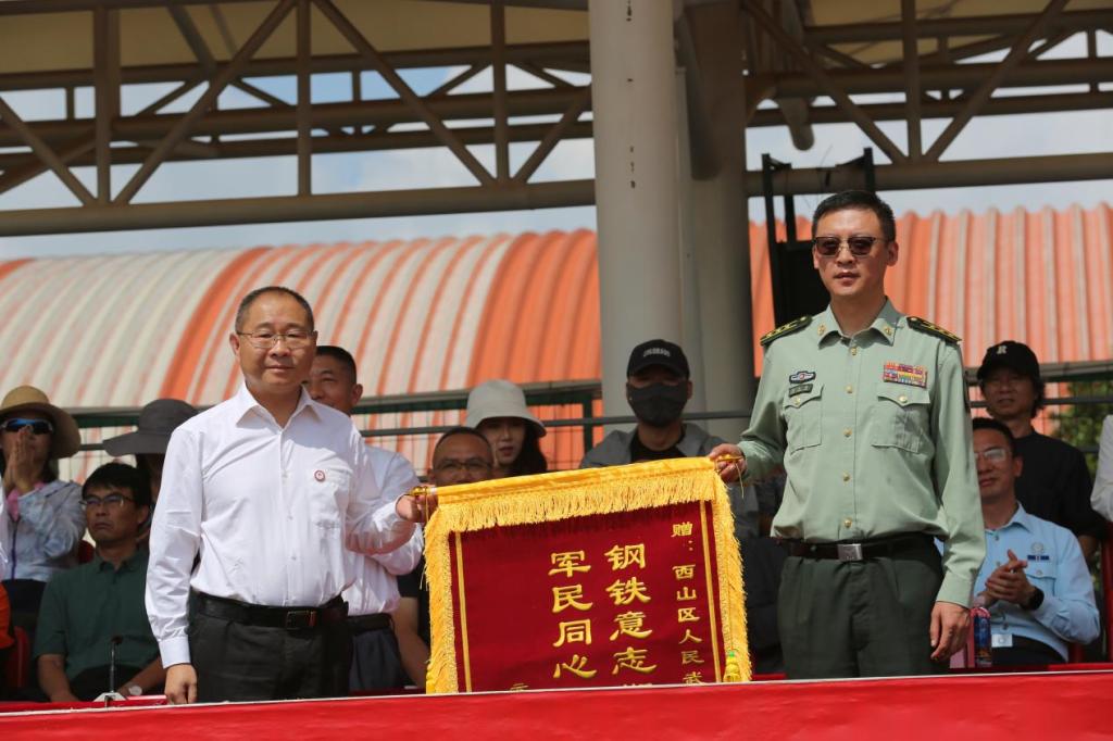 典礼上,校领导为军训优秀学员代表、优秀教官代表颁发荣誉证书,并向西山区人民武装部授予锦旗,感谢他们对best365军训工作的大力支持。
