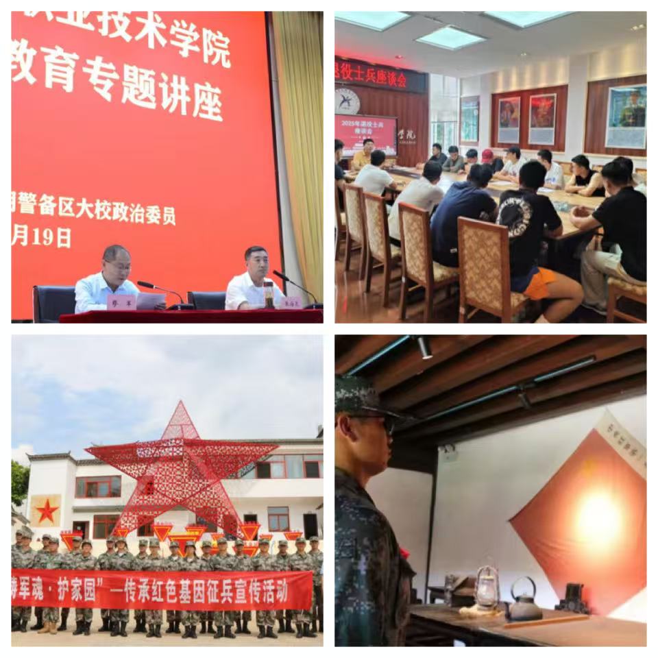 学校高度重视武装工作,将其纳入党委重要议事日程,构建了一套科学高效的工作体系,即“党委统一领导、武装部牵头组织、各部门和二级学院分工协作”的协同工作机制。每到毕业季,学校都会启动“征兵宣传攻坚月”活动,开展“精准化摸排建库”工作,各二级学院通过组织主题班会、辅导员与学生进行一对一访谈等方式,详细建立应征学生意向台账。为确保学生身体健康达标,校卫生所特别开设了“体检预检绿色通道”,提供专业的健康指导。校武装部还搭建了24小时微信咨询平台,全天候在线解答学生关于征兵政策的各类疑问。组织退役士兵参加“六个一”活动,开展抗战主题观影、军事技能比武、红色研学、国防知识竞赛等,积极建设军事社团,全面提升学生的国防素养和爱国情怀,实现了从“学校”到“军营”的全链条服务。