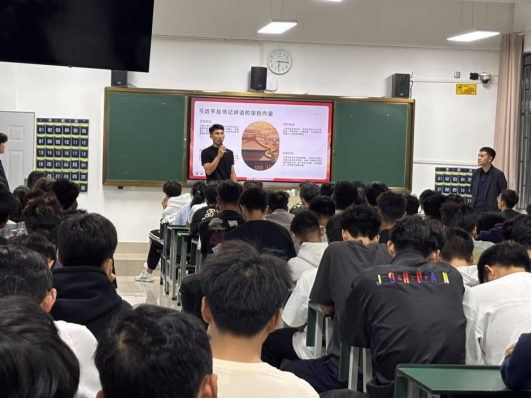 随后进行的“纪念中国人民抗日战争胜利80周年”主题团日活动,学院团总支围绕活动背景、抗战胜利的历史意义与世界反法西斯战争回顾等内容,结合阅兵仪式盛况与习近平总书记讲话精神,生动展现了中华民族在抗战中凝聚的伟大精神与中国在世界反法西斯战争中的重要贡献。活动通过影像资料、团歌学习、誓词重温等环节,营造了庄严而富有教育意义的氛围,增强了团员的历史认同感与组织归属感。