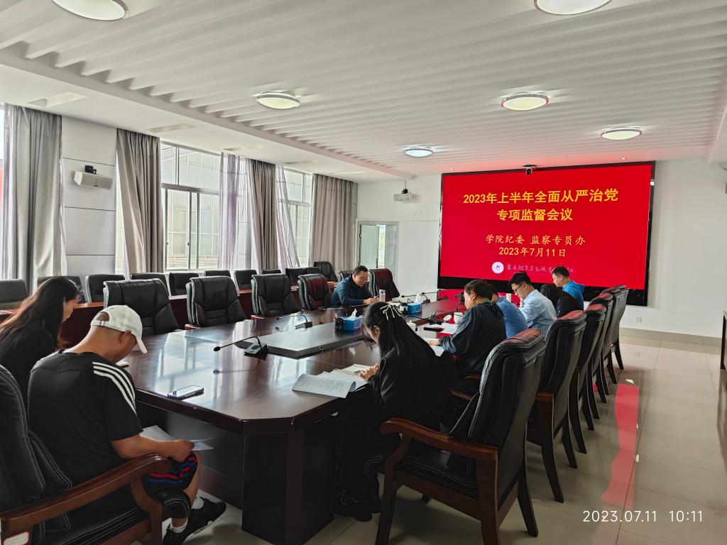 7月11日上午,best365英国在线体育官网纪委监察专员办在教2楼第一会议室召开2023年上半年全面从严治党专项监督会议。会议由学校纪委书记、监察专员金吉斌主持。